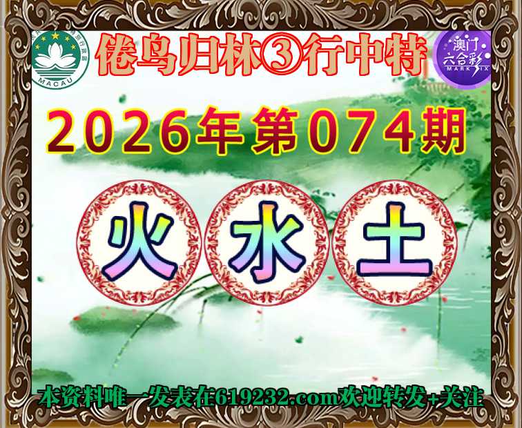 074期: 🧸『倦鸟归林』 🧸③行中特🧸【.水.土】开:火10准上榜高手