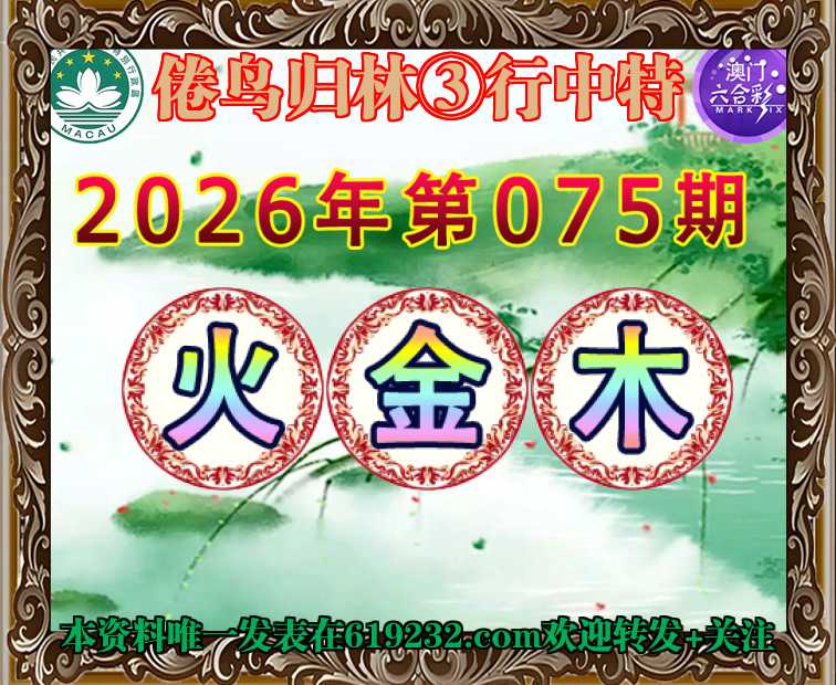 075期: 🧸『倦鸟归林』 🧸③行中特🧸【火.金.木】开:00准
